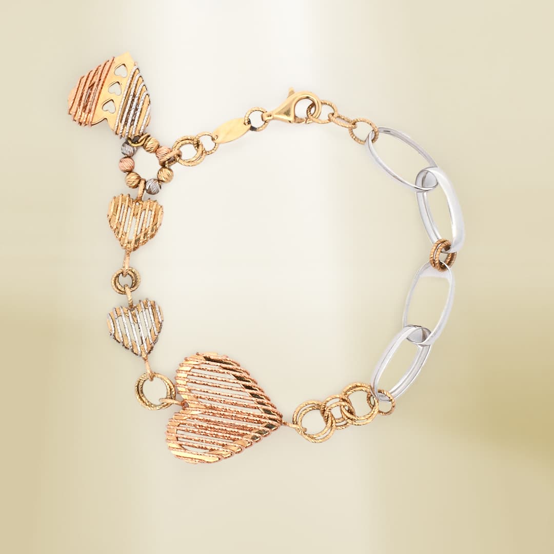 14K Tri-Color Charm Design Bracelet