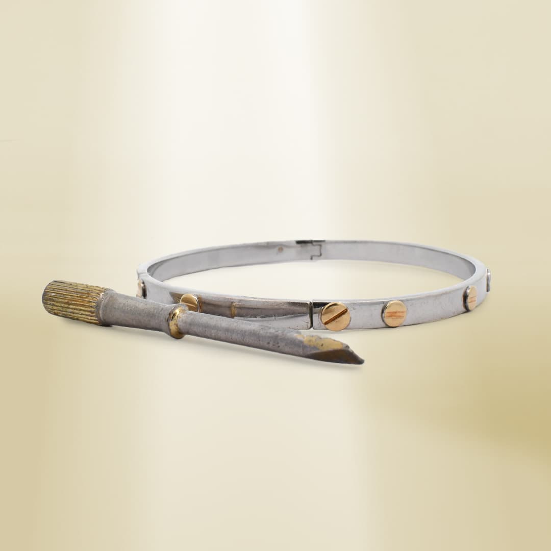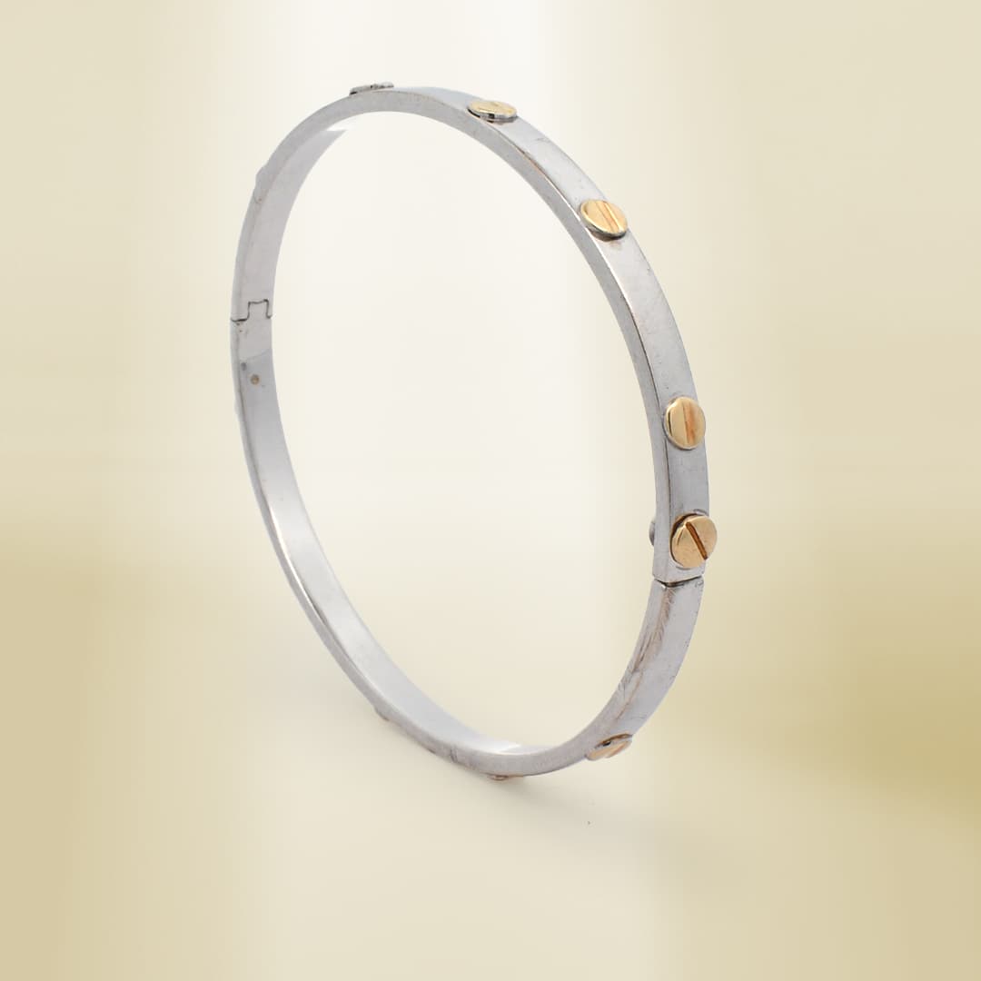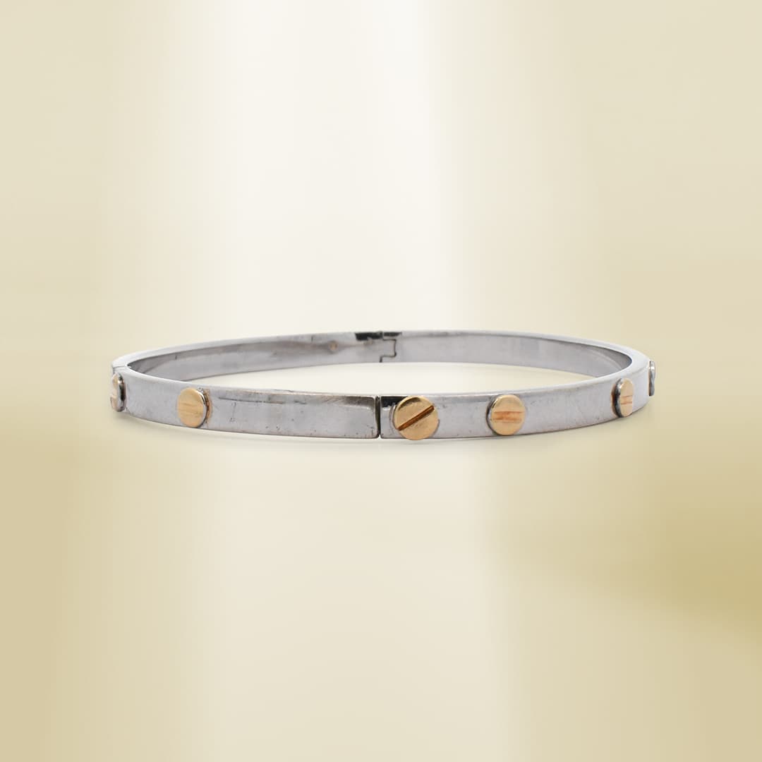 14K Two-Tone Brand-Inspired Screw Type Bangle