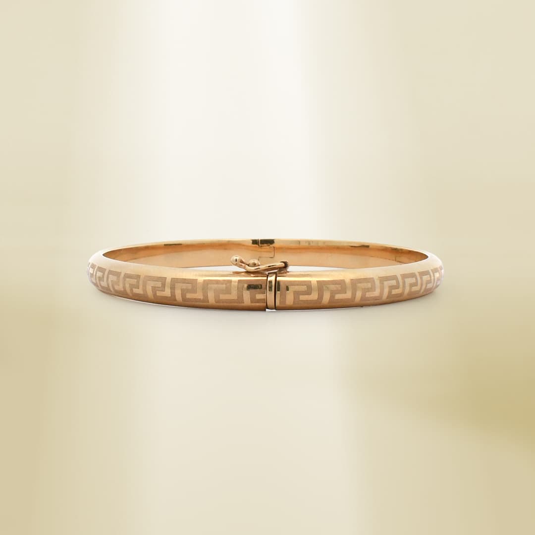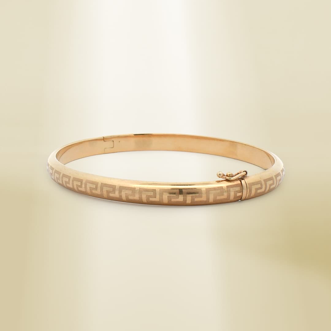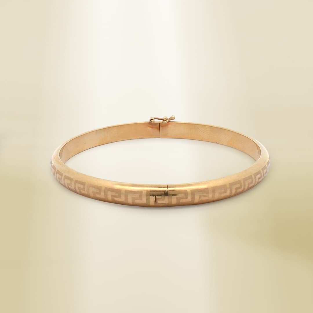 18K Yellow Gold Clip Type Greek Pattern Bangle