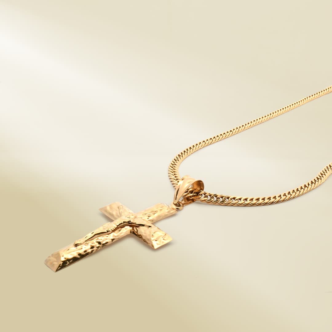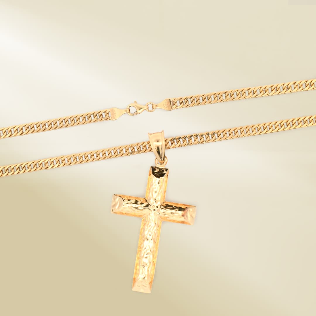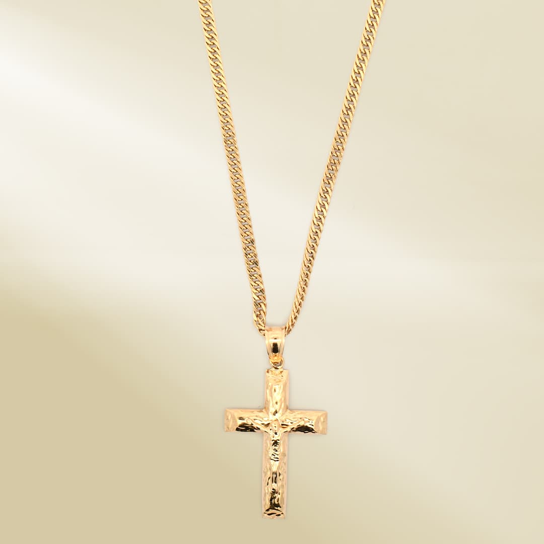 18K Yellow Gold Curb Chain Necklace with Cross Pendant