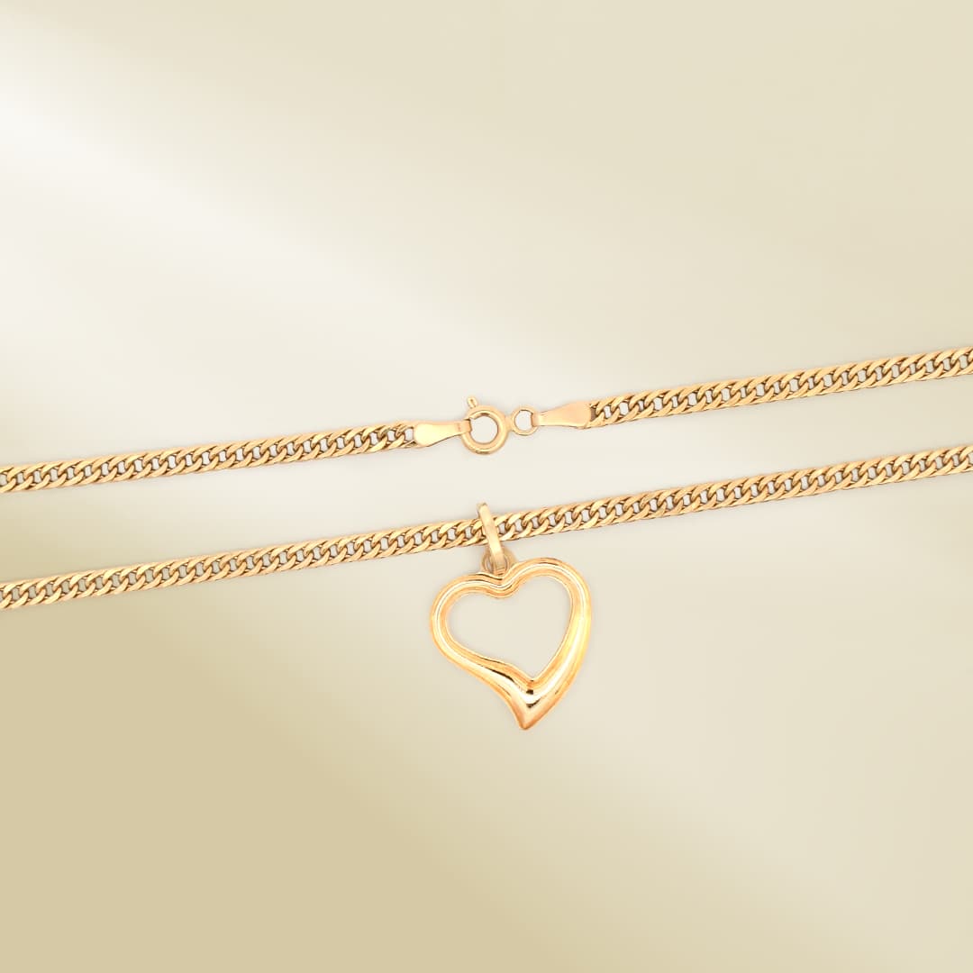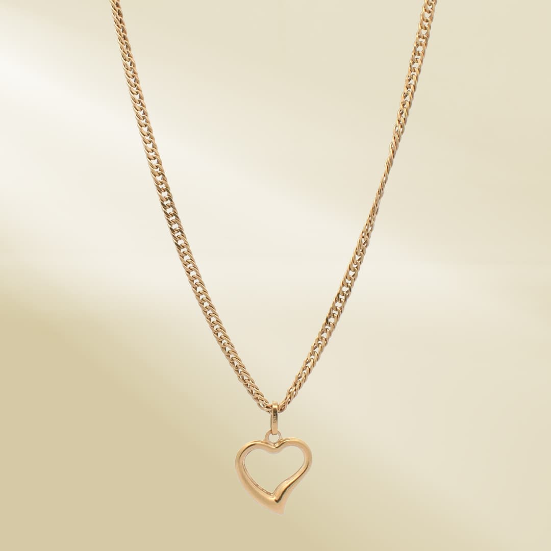 18K Yellow Gold Curb Chain Necklace with Heart Pendant