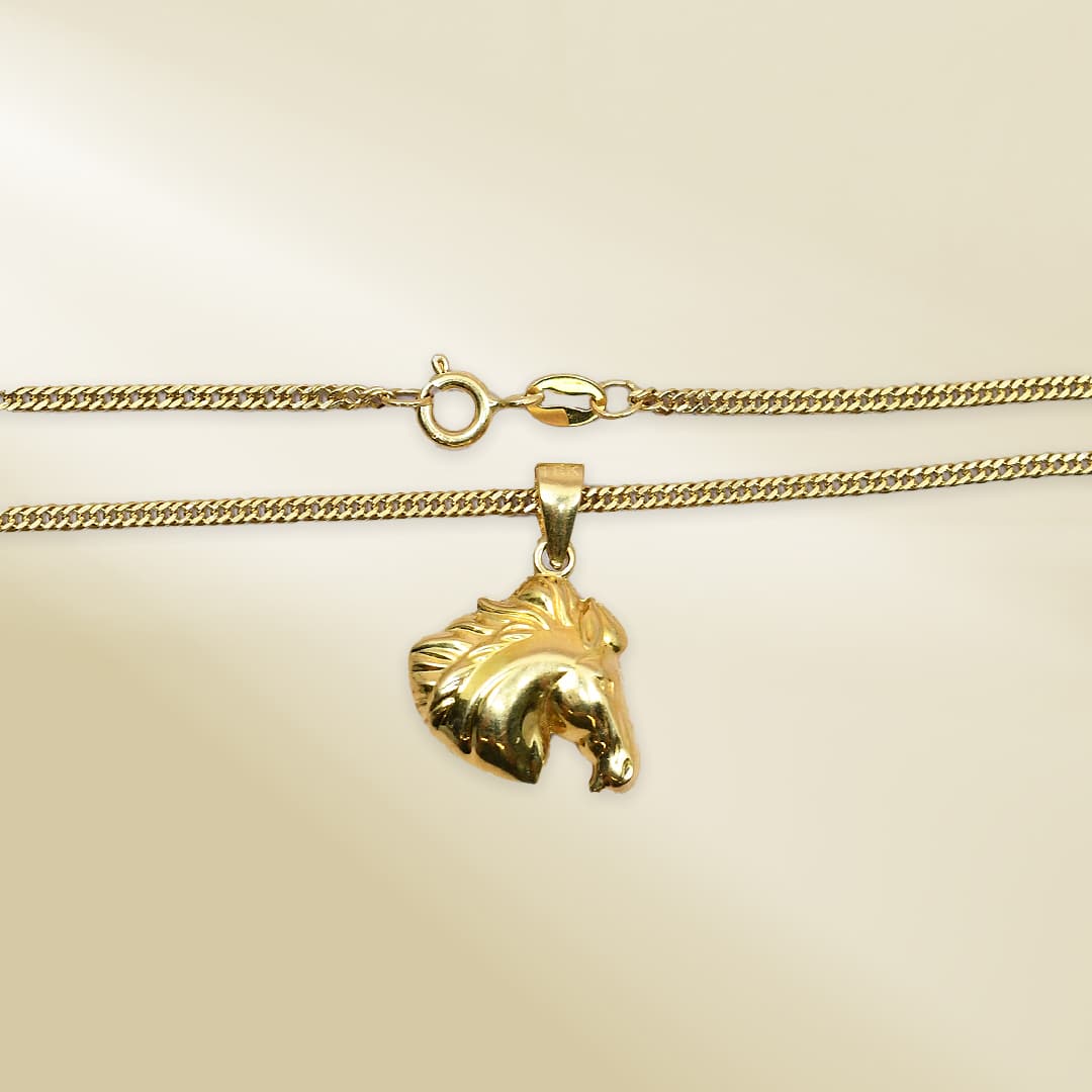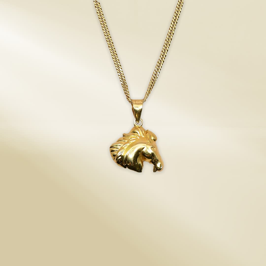 18K Yellow Gold Curb Chain Necklace with Horse Pendant