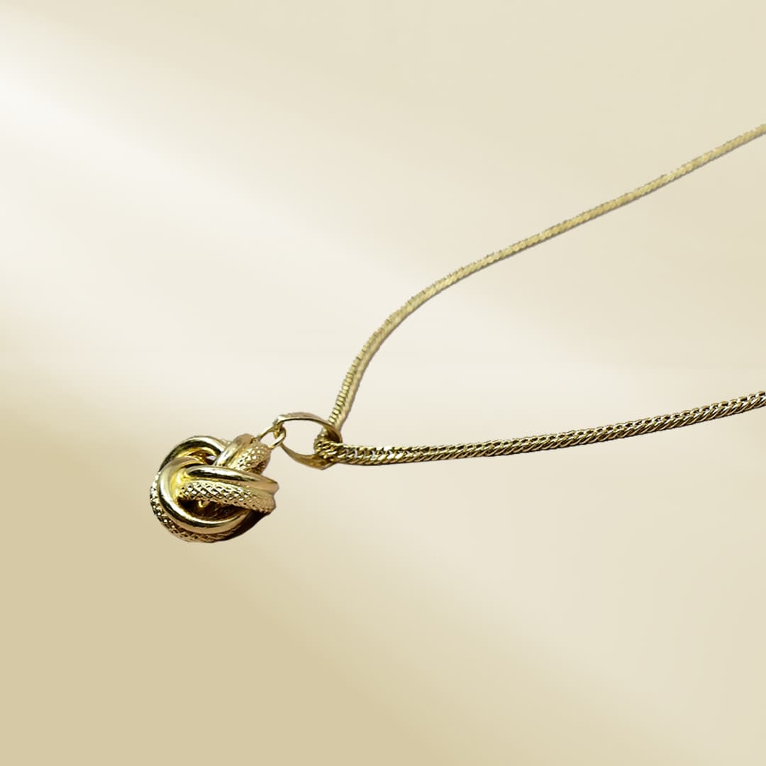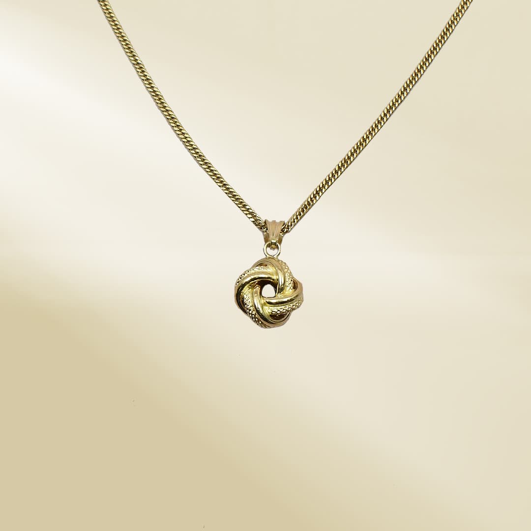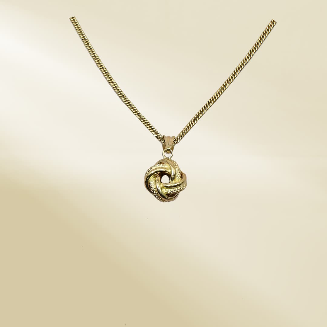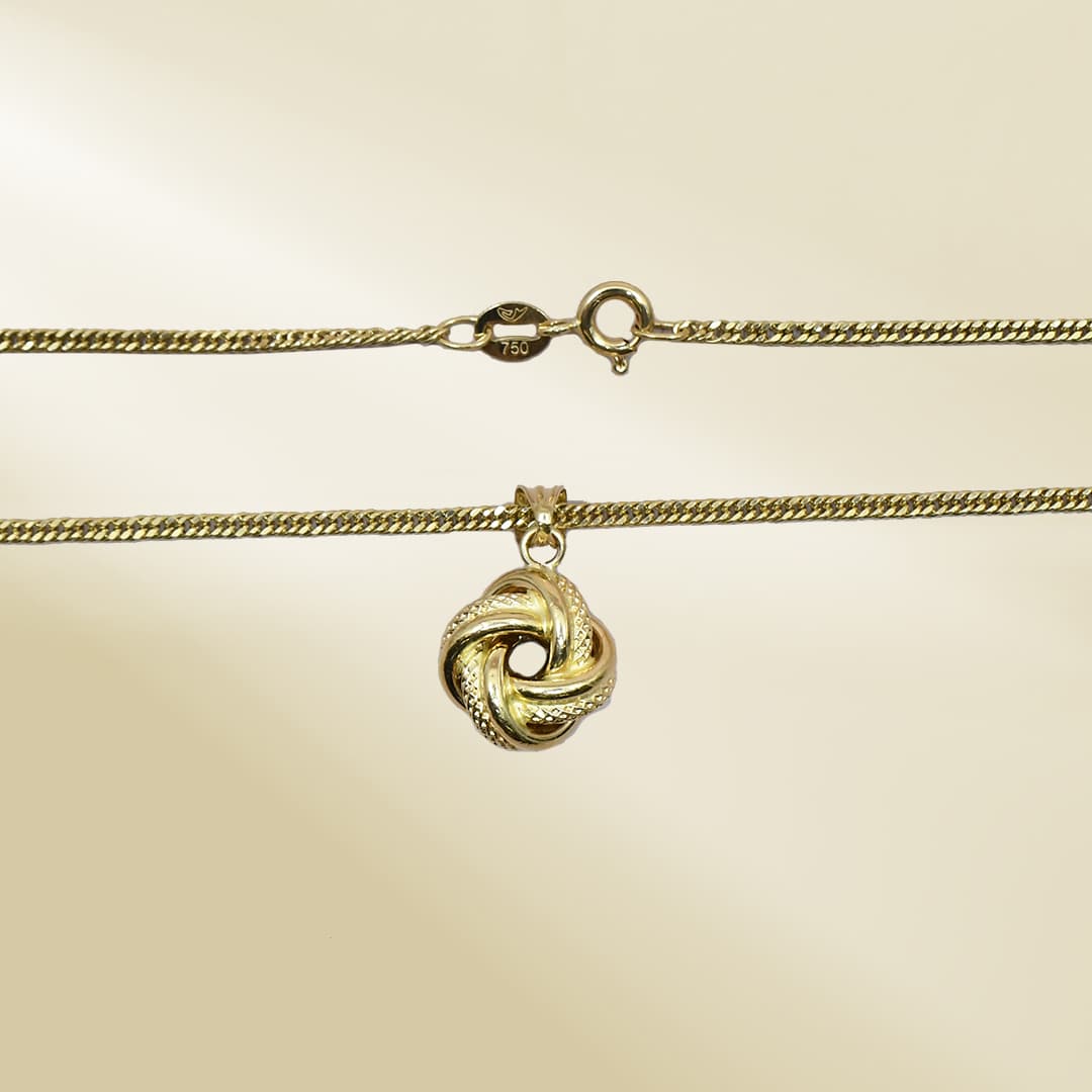 18K Yellow Gold Curb Chain Necklace with Knot Pendant