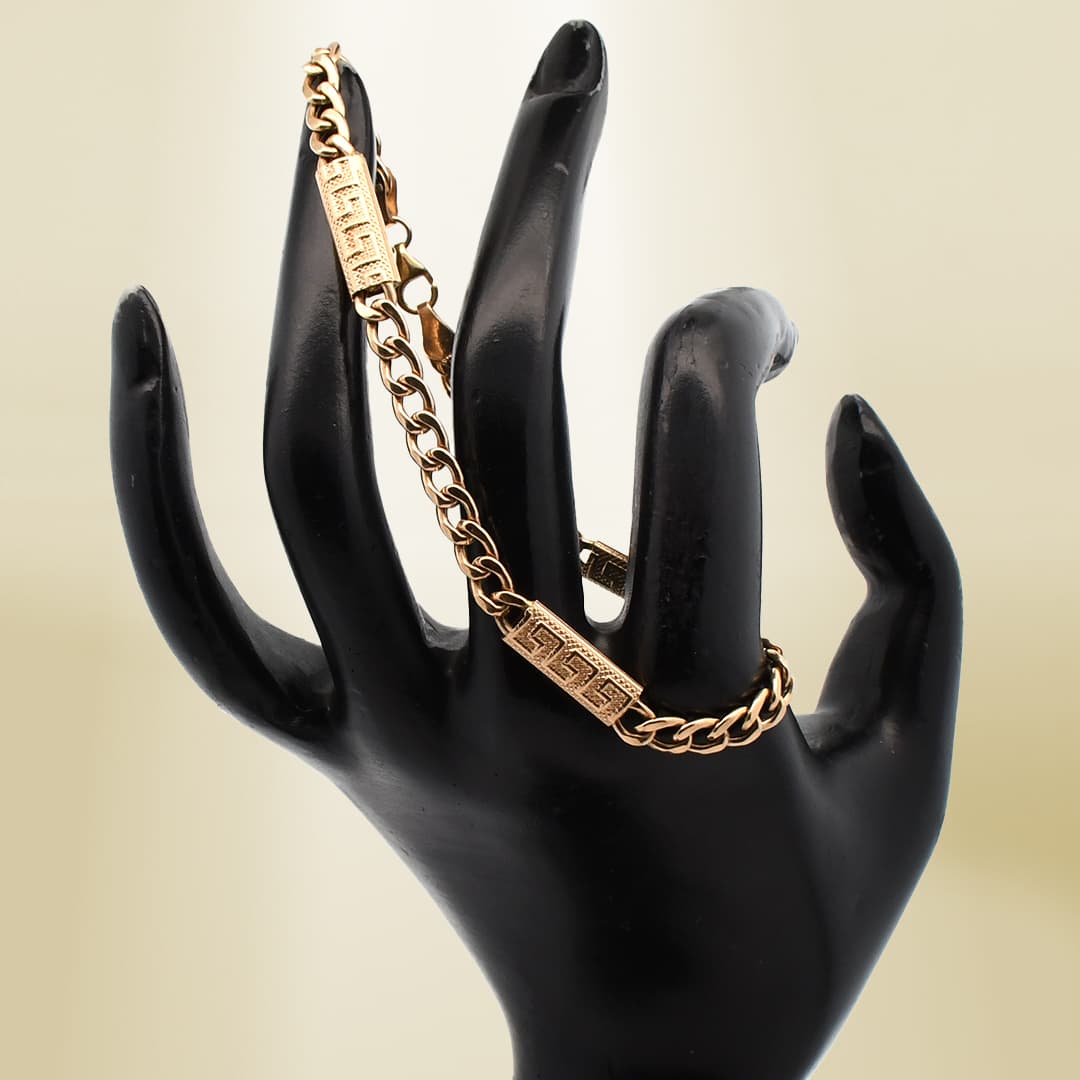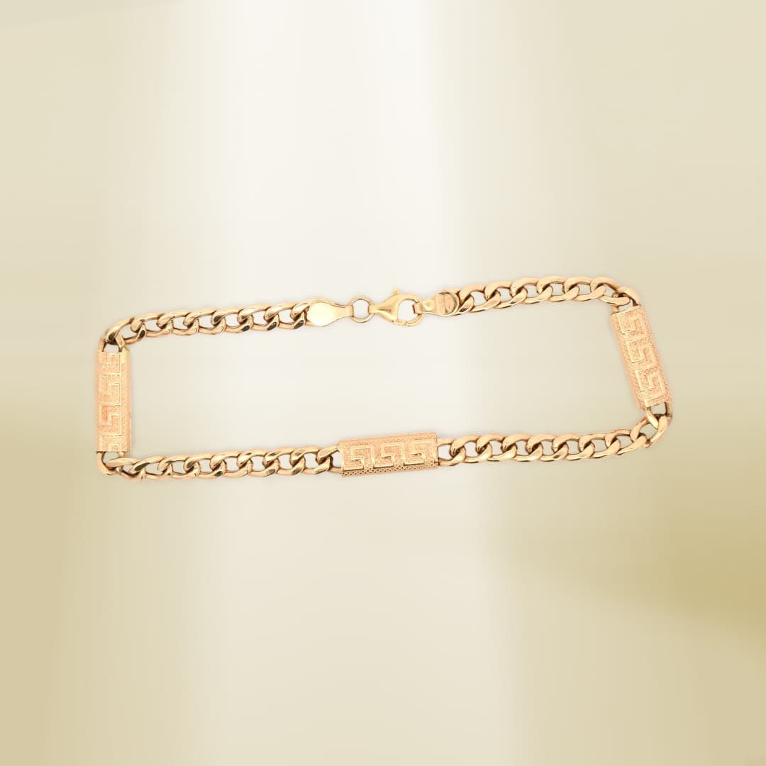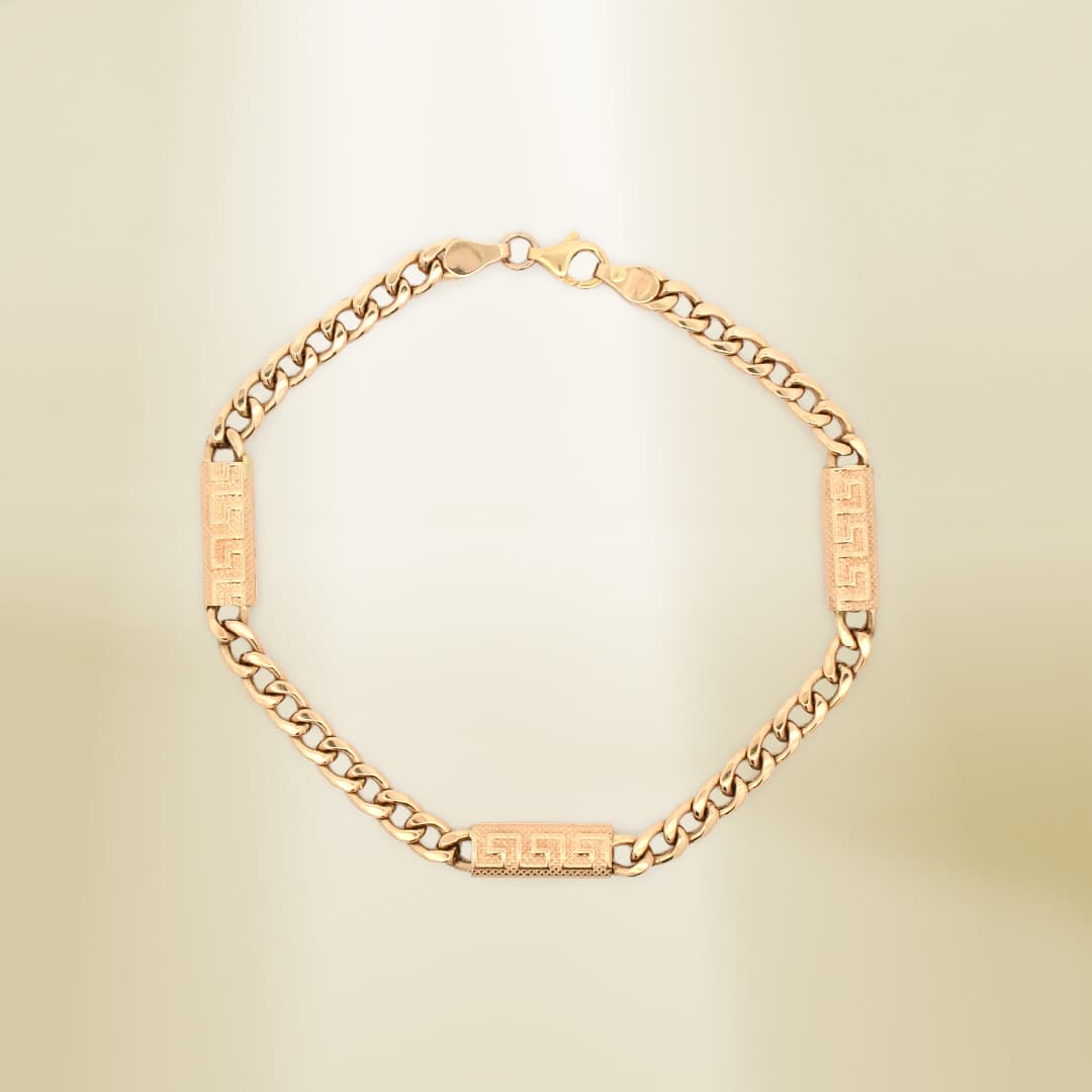 18K Yellow Gold Curb Chain with Greek Pattern Station Bracelet