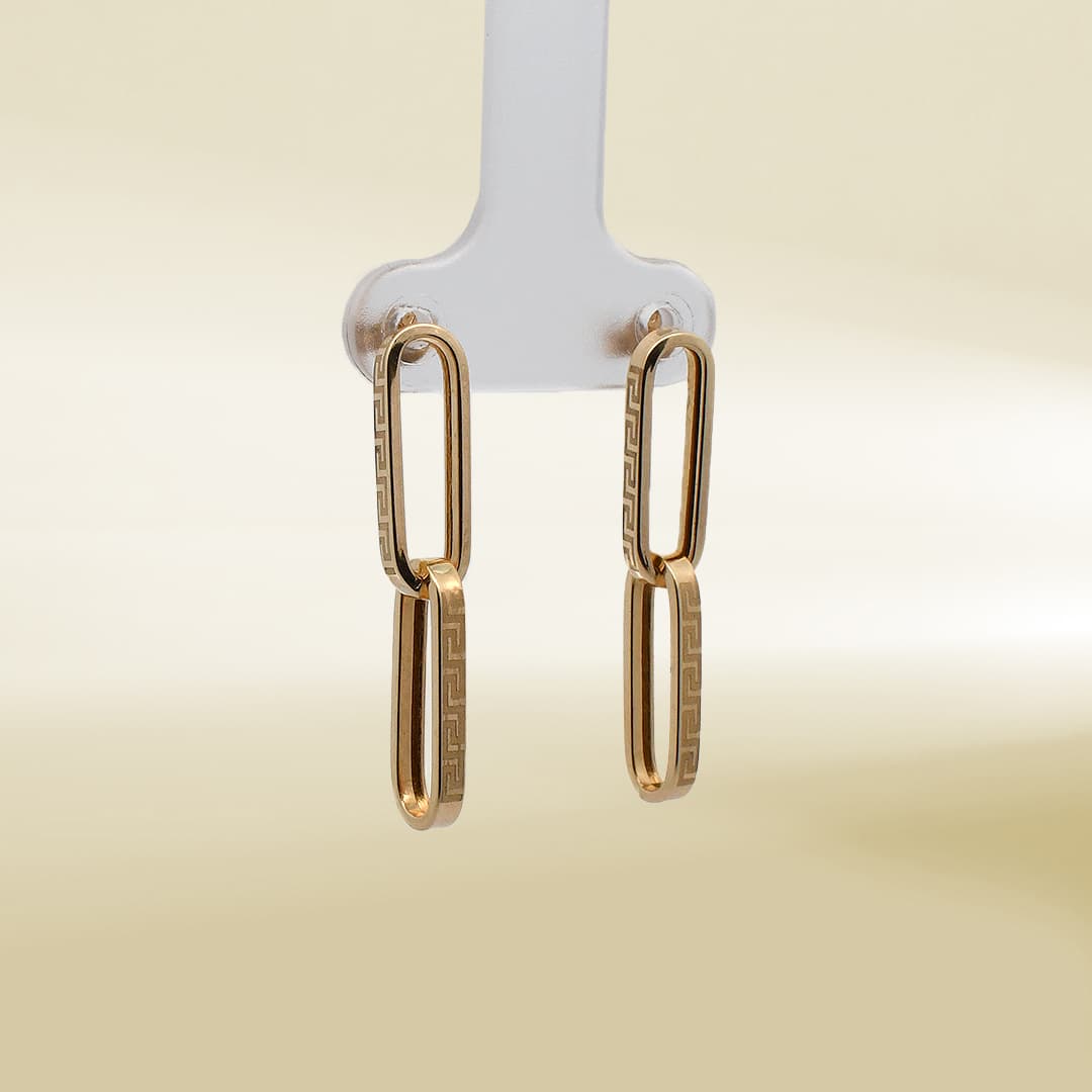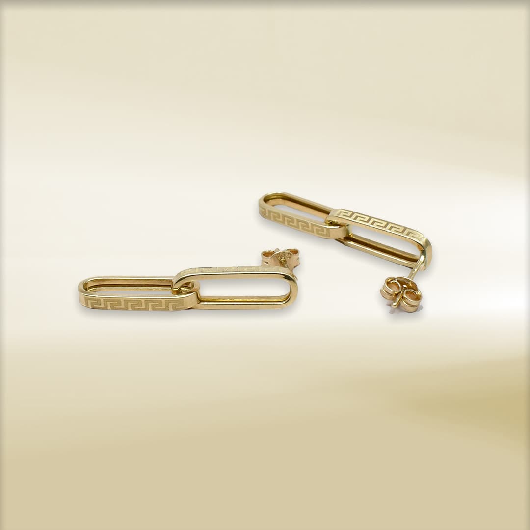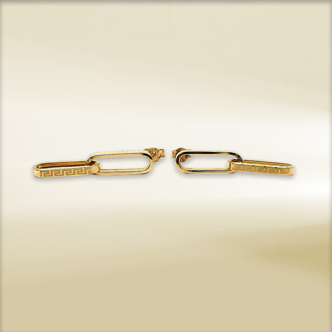18K Yellow Gold Greek Inspired Pattern Link Earrings