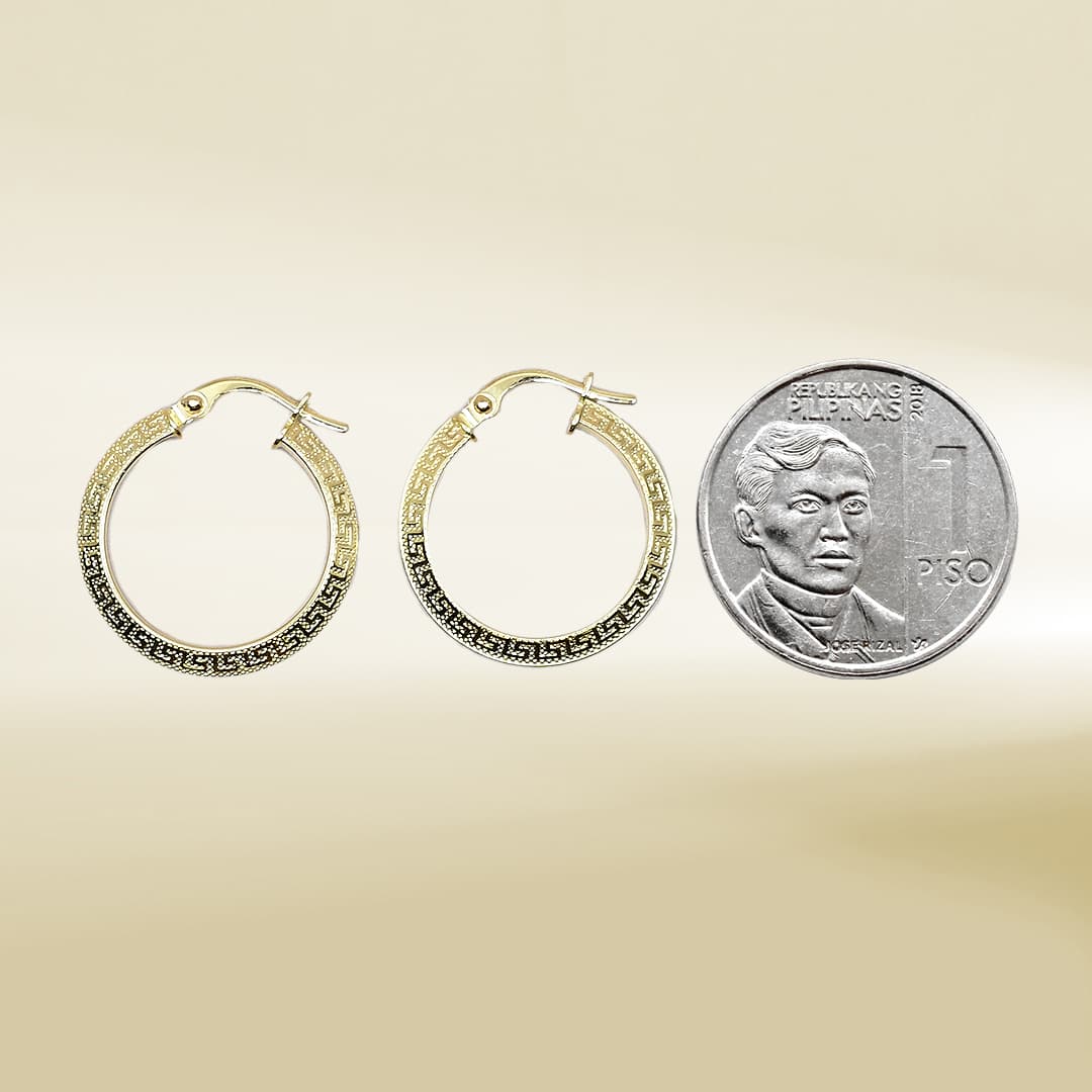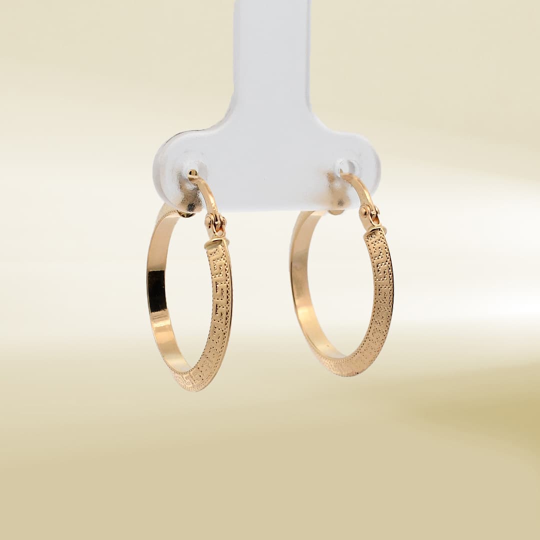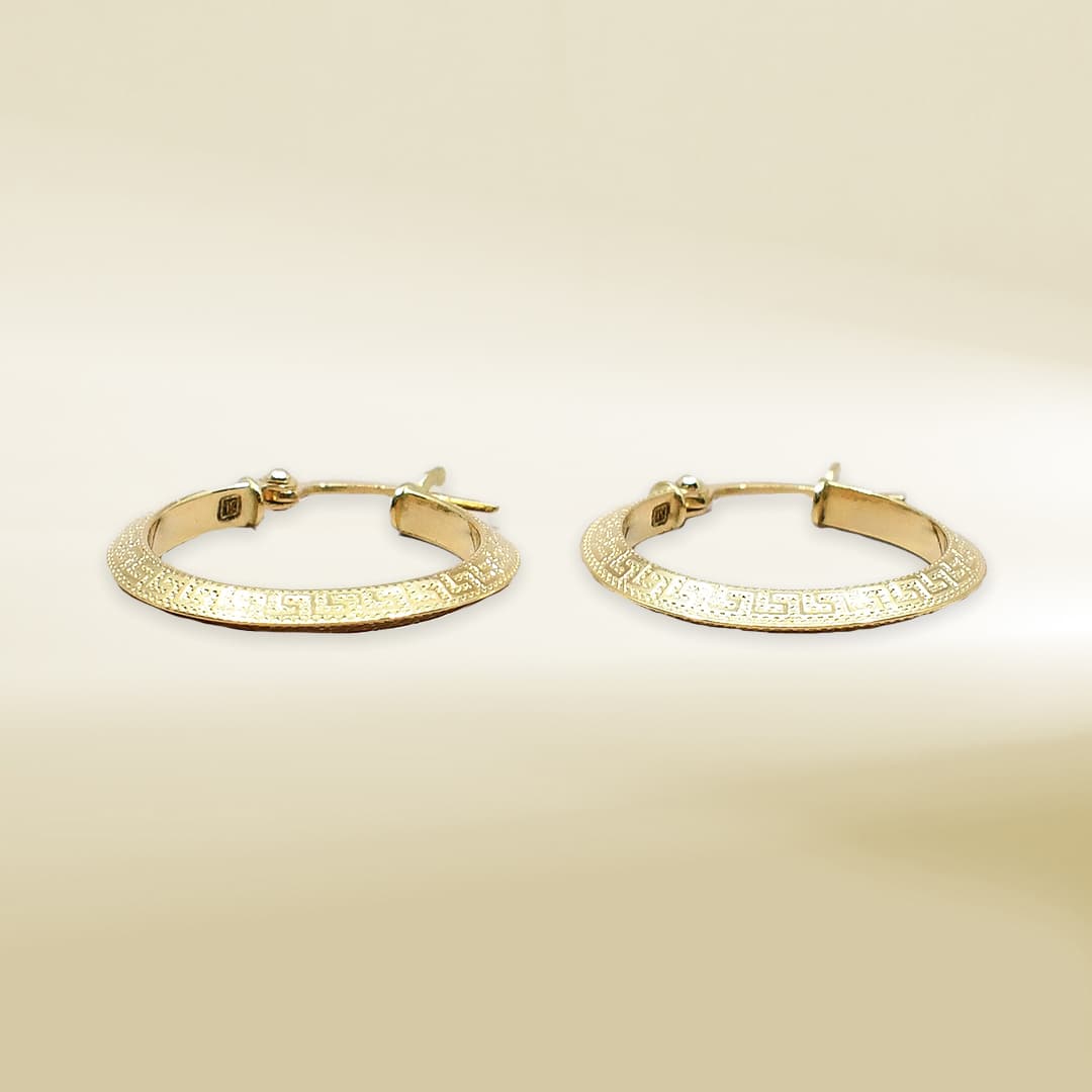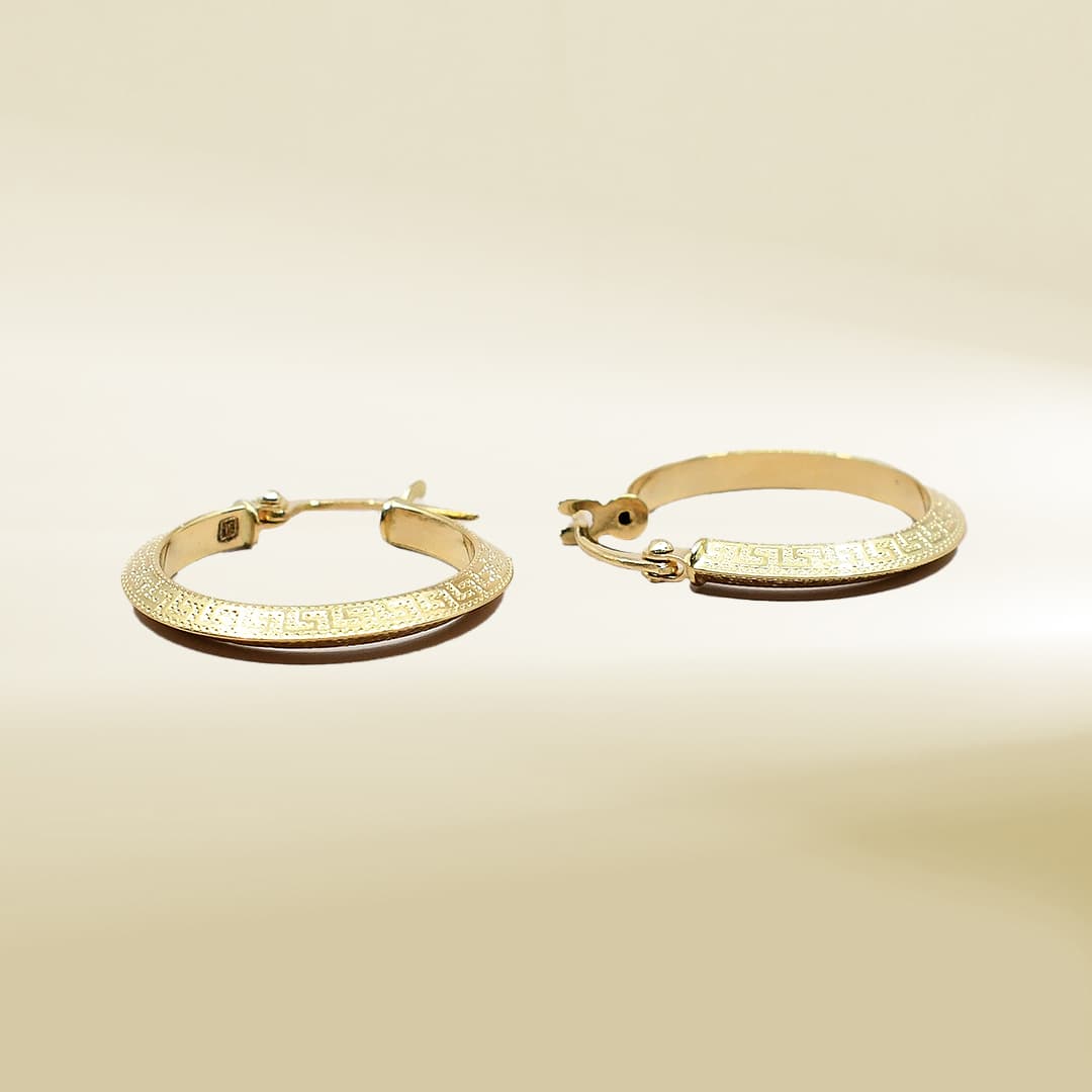 18K Yellow Gold Greek Insired Patterned Hoop Earrings