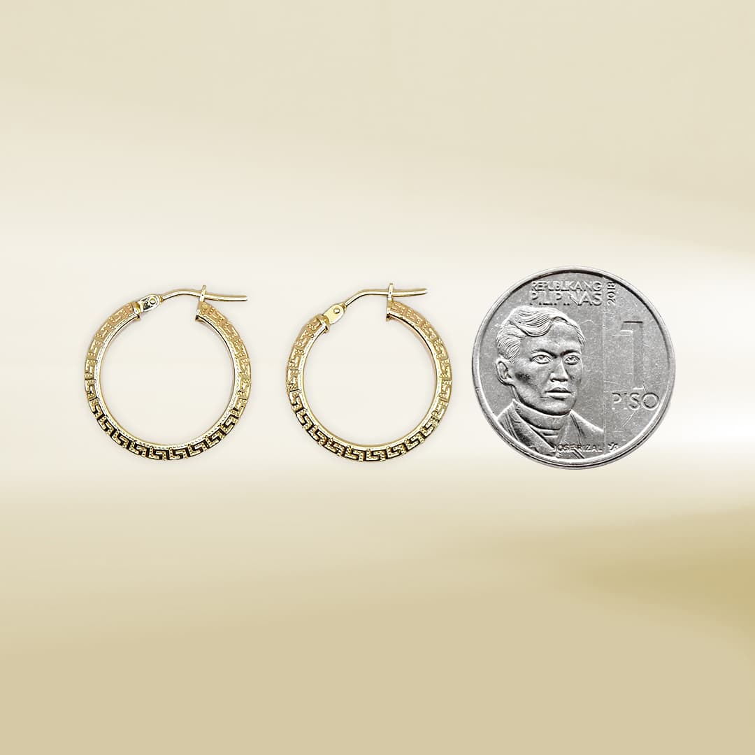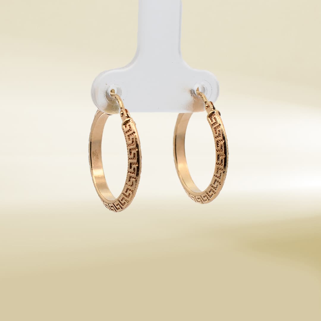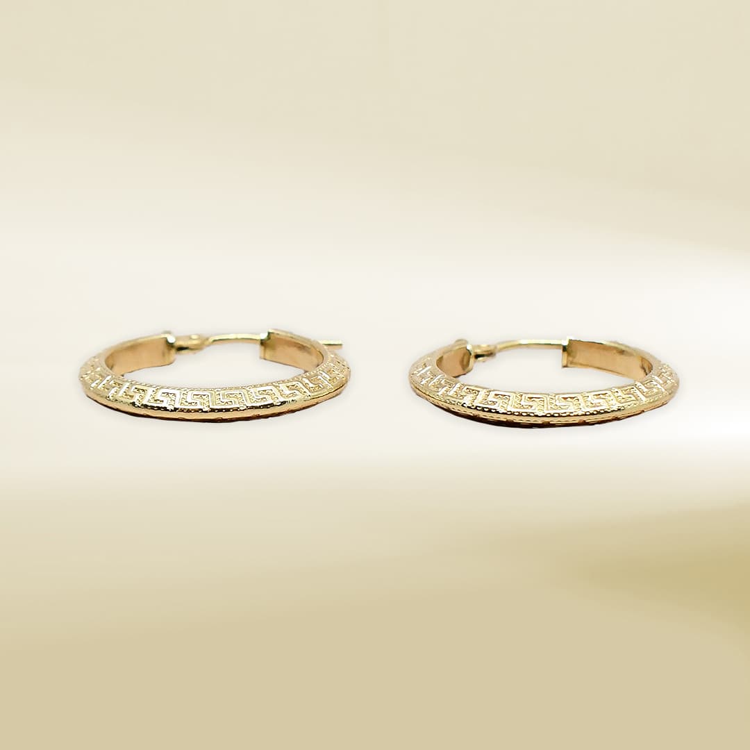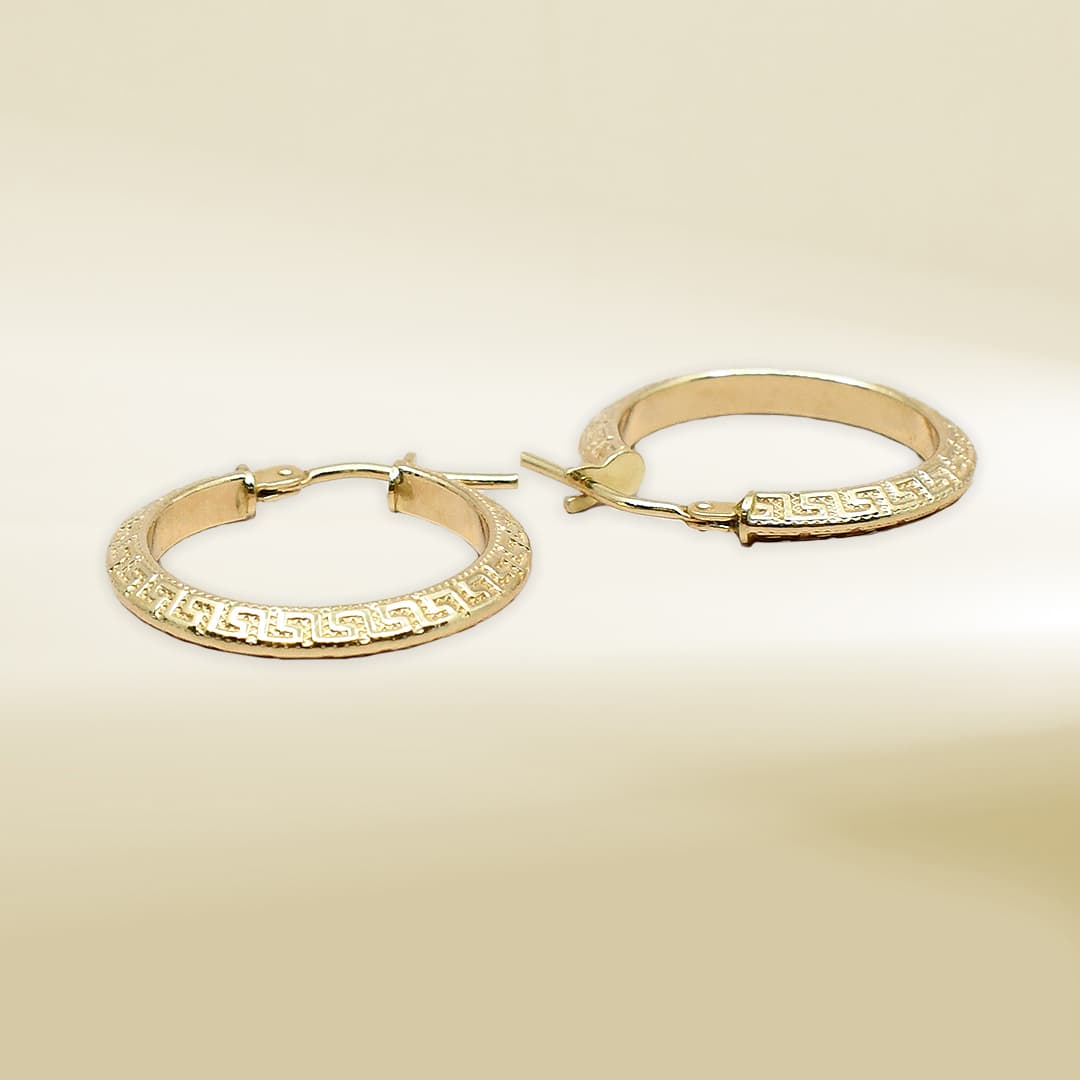 18K Yellow Gold Greek Insired Patterned Hoop Earrings