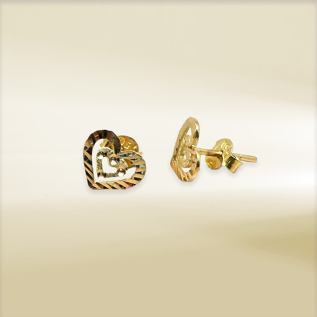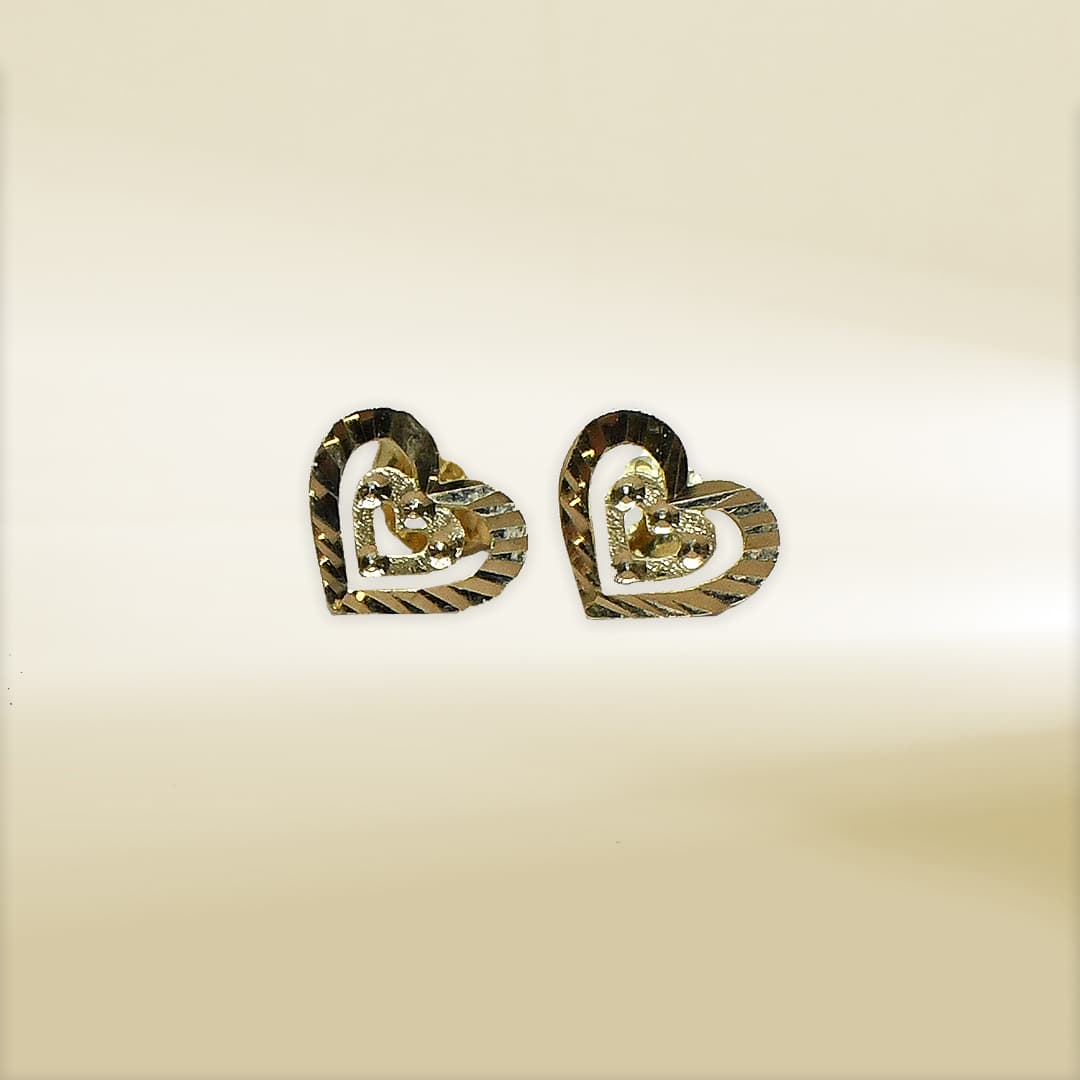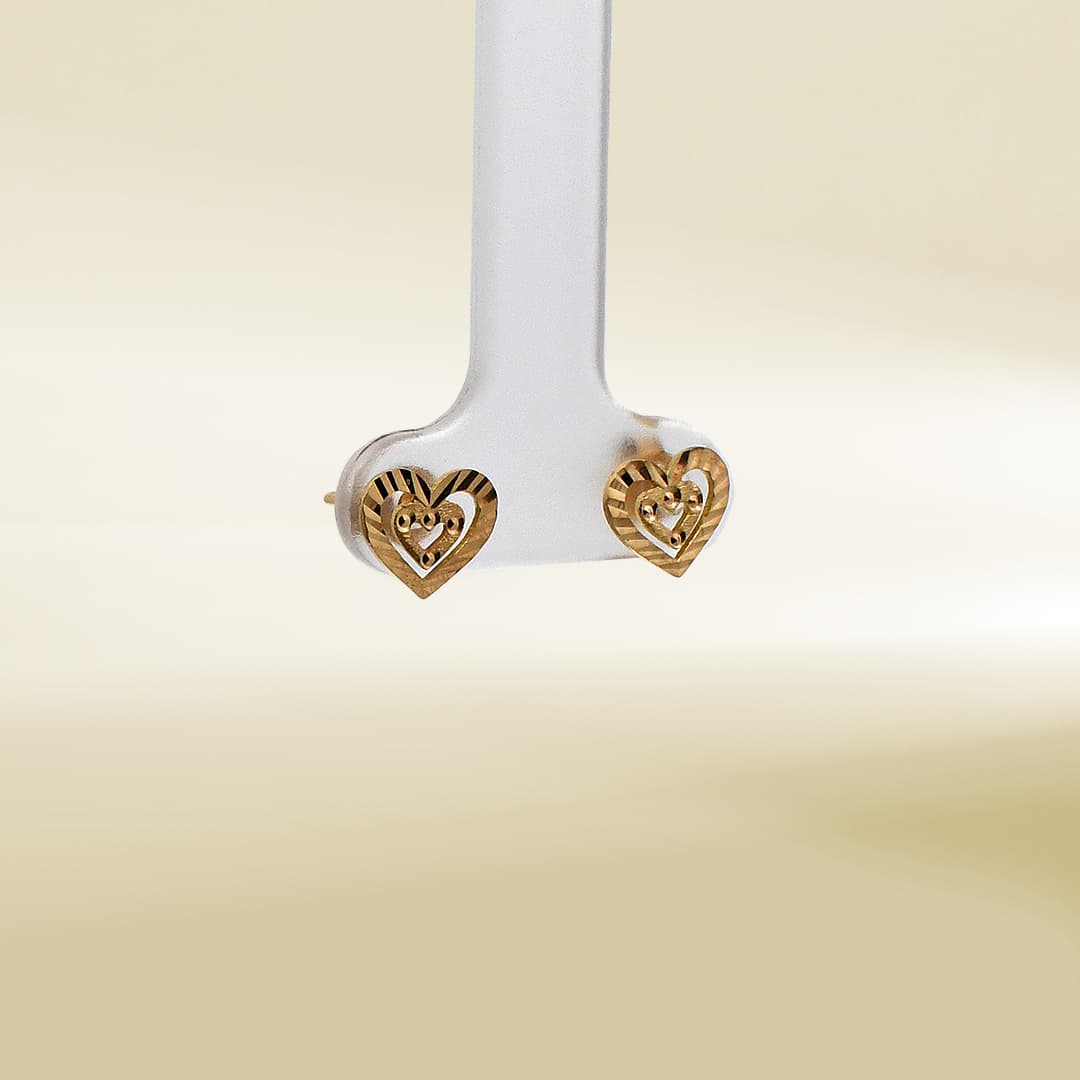 18K Yellow Gold Heart Design Earrings