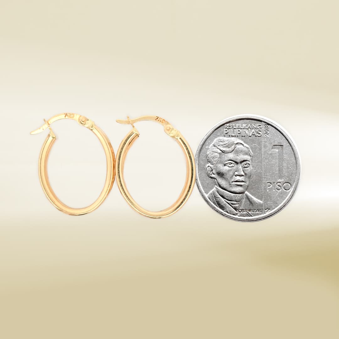 18K Yellow Gold Oval Shape Hoop Earrings