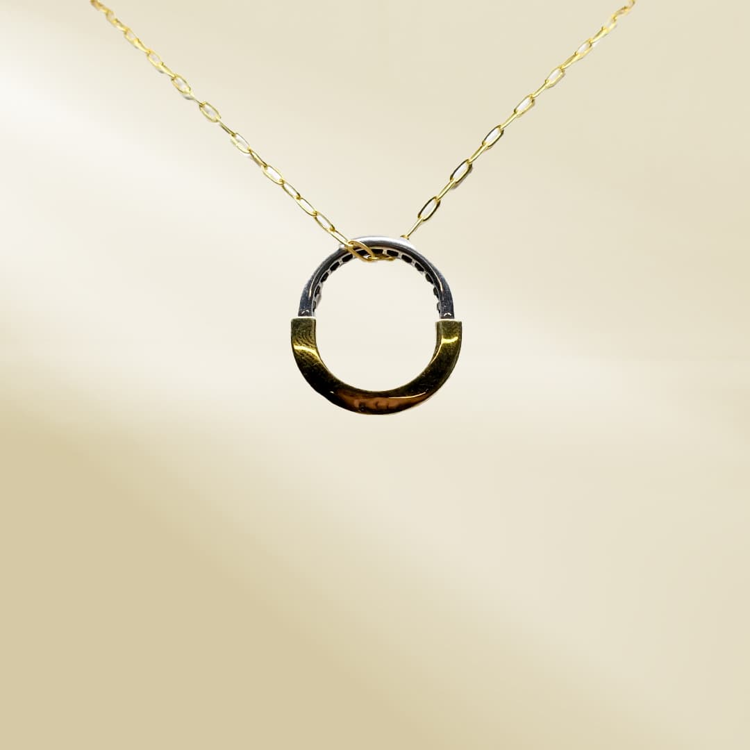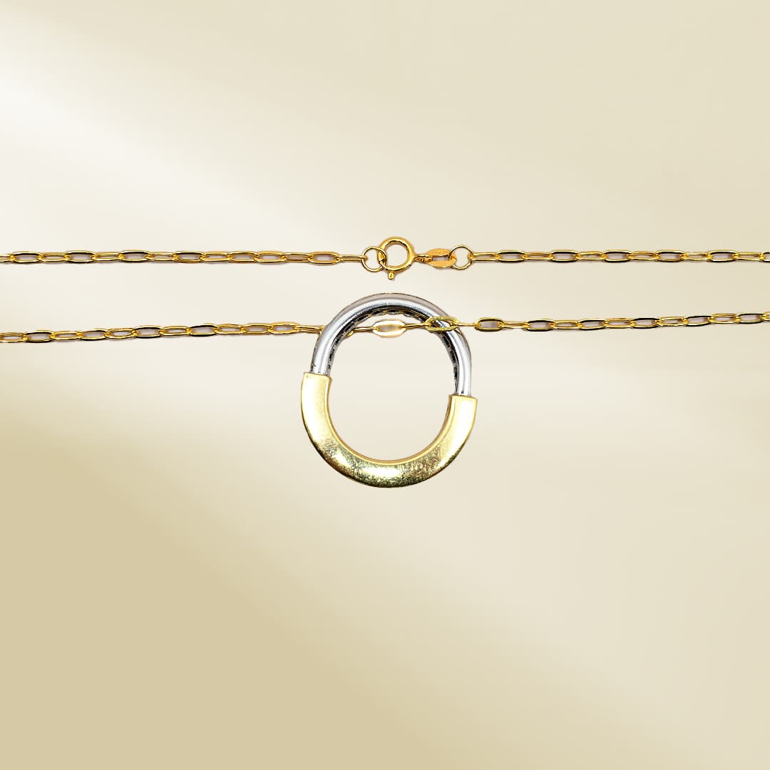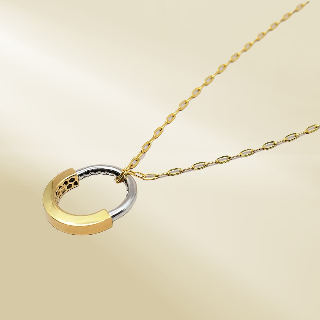 18K Yellow Gold Paperclip Chain Necklace with Two-Tone Pendant