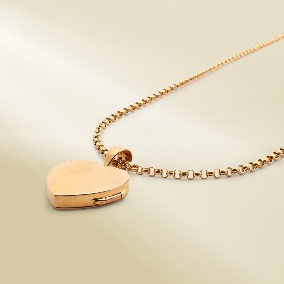 18K Yellow Gold Rolo Chain Necklace with Heart Locket Pendant